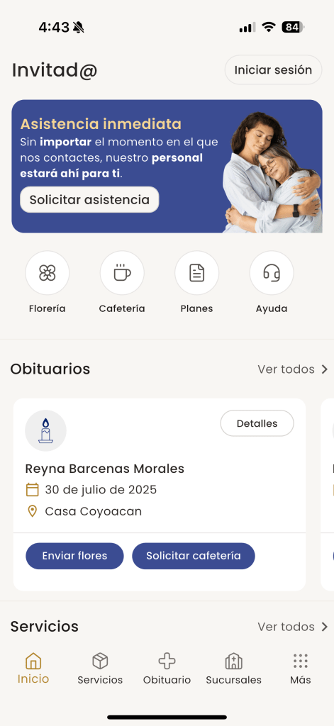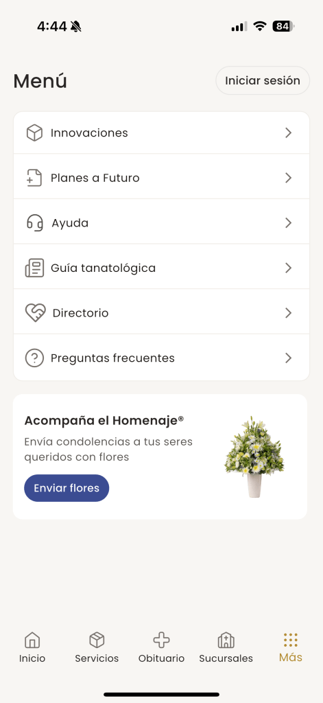 Antes: acceso a contratos de Previsión Funeraria para conocer pormenores de su servicio, gestionar pagos, agregar adicionales o contratar nuevos planes. Además de conocer las ubicaciones de las sucursales, equipamiento y amenidades.