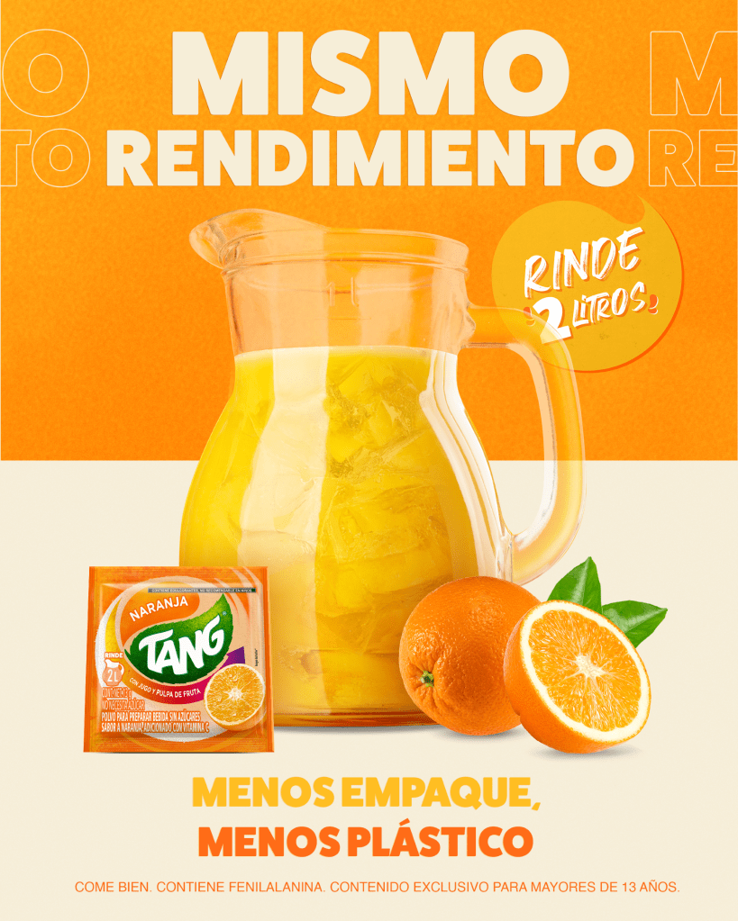 La reducción en los sobres de Tang se suma a las 875,800 toneladas de empaques que Mondelēz International eliminó a nivel mundial el año pasado.