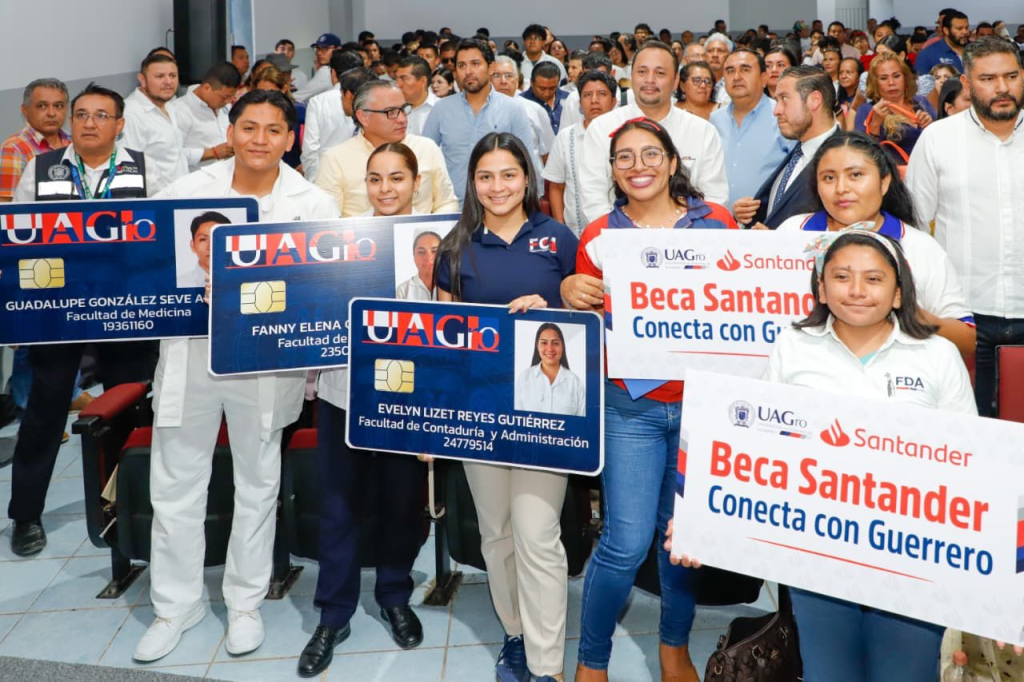 Este martes, el rector de la Universidad Autónoma de Guerrero (UAGro), Javier Saldaña Almazán, y el Director Ejecutivo de Santander Universidades y Director General de Universia México, Arturo Cherbowski Lask, entregaron en Acapulco 12 mil 387 tarjetas universitarias inteligentes, que permitirán a los estudiantes abrir su primera cuenta bancaria, agilizar el pago de servicios sin hacer filas y acceder a diversos beneficios académicos.